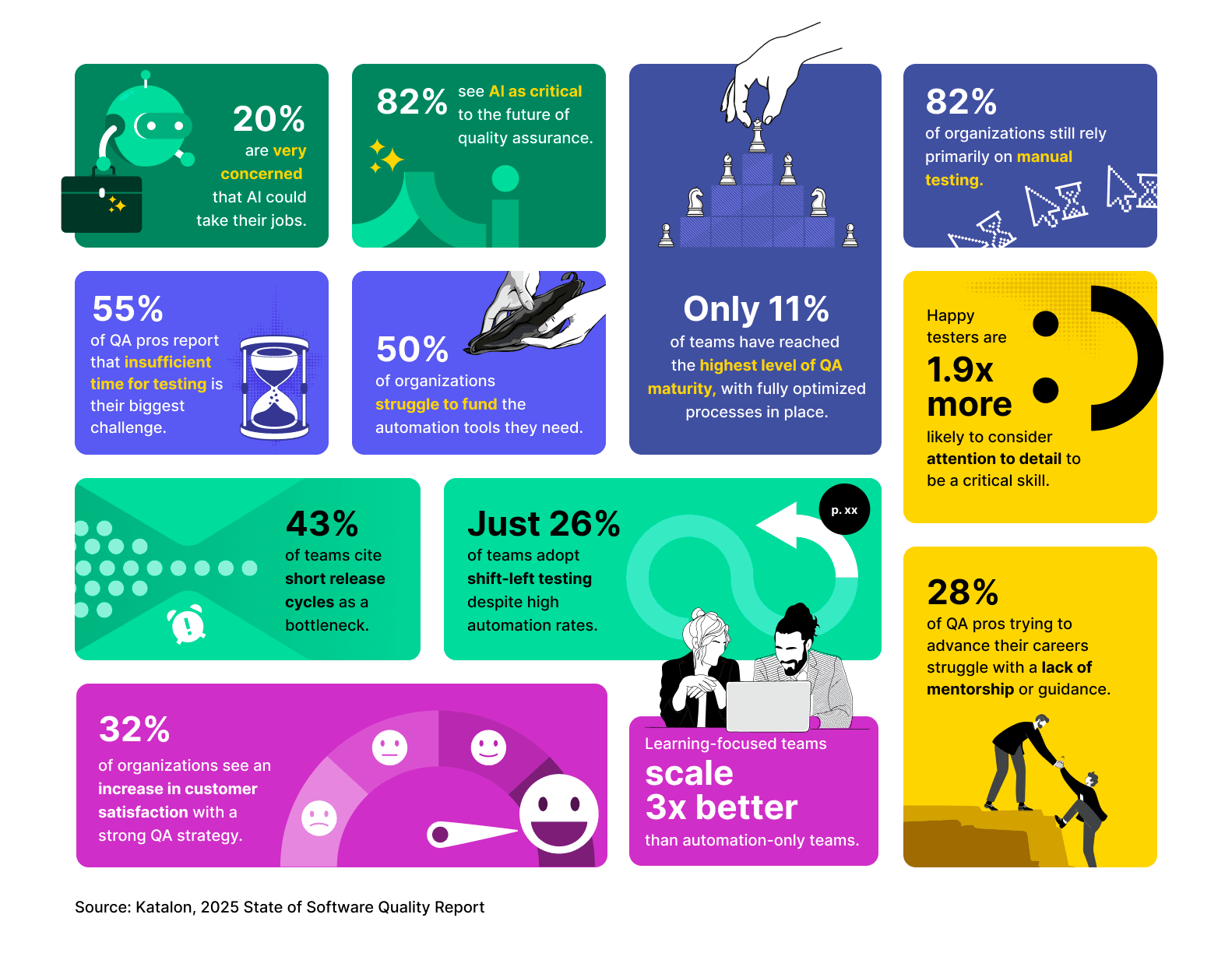 The key highlights of Katalon’s 2025 State of Software Quality Report are: