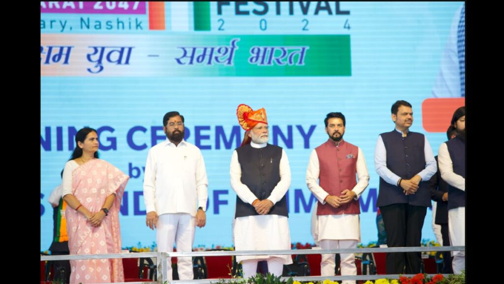 Hon. Prime Minister Modi commended the vibrant youth from across the country, asserting that India is poised to become a global manufacturing hub, crediting this achievement to the country’s energetic youth. Hon. Chief Minister Shri Eknath Shinde echoed Swami Vivekananda’s message, emphasizing that the youth should recognize their power and never consider themselves powerless.
