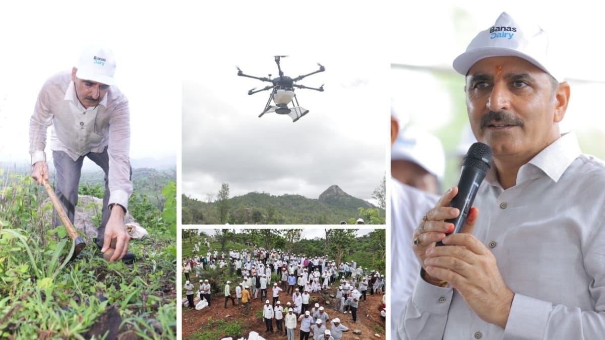 Throughout the month of July, Banas Dairy will sow over 1 crore seedballs across the Aravalli hills. To mark the auspicious beginning, Speaker, Gujarat Legislative Assembly Shri Shankar Chaudhary offered prayers at the Ambaji temple and symbolically draped a green chunari (veil) to Maa Amba, representing nature and greenery.