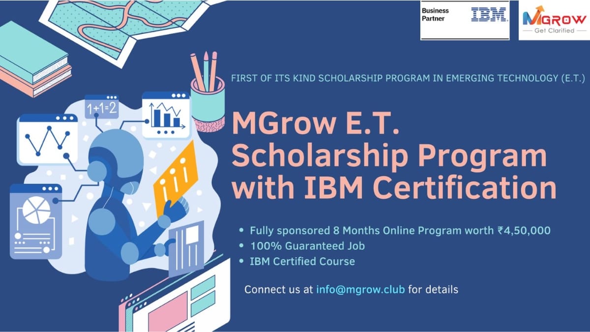 Applications for the MGrow & Kalp Studio Scholarship Program are now open. Interested candidates can find more information and apply at https://mgrow.club/pages/ibm-certified-scholarship-program-guaranteed-job.