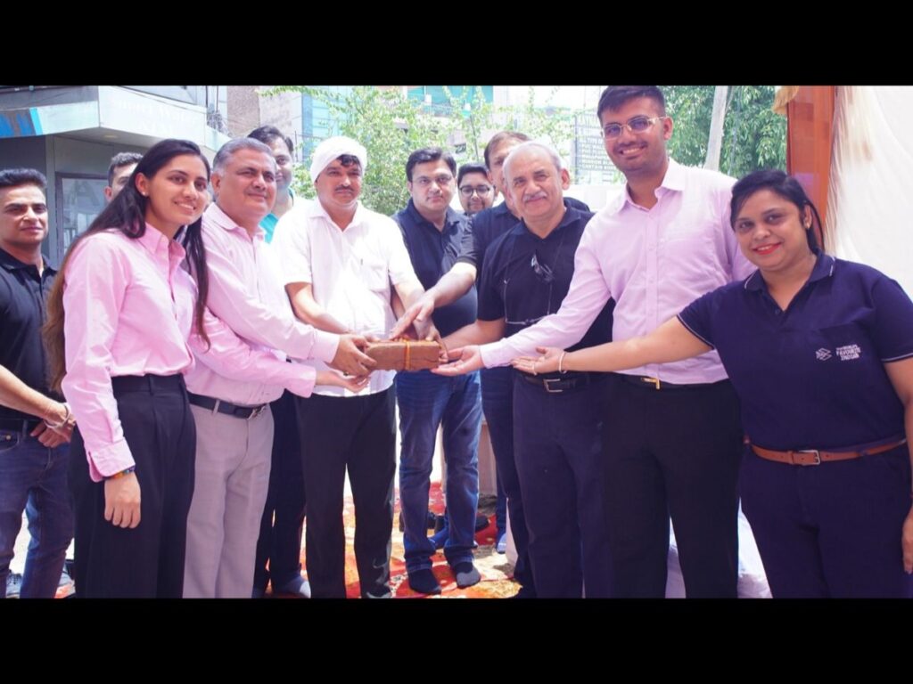 Following the Triumph Dwarka inauguration, Mr. Rakesh Sharma participated in the Bhoomi Pooja for the upcoming Chetak and Bajaj motorcycle showroom of JSB Group on Railway Road, alongside Amit Sidana, President of Chetak Service India.