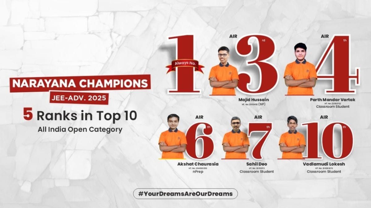 Narayana Secures 5 of the Top Ten Ranks in JEE Advanced 2025